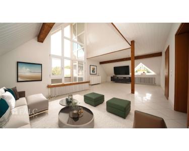 Durch den direkten Zugang zum Dachgeschoss in dieser Wohnung bietet sich die reizvolle Möglichkeit, die Decke zu öffnen – etwa für eine lichtdurchflutete Galerie oder ein zusätzliches Schlafzimmer mit besonderem Charme.