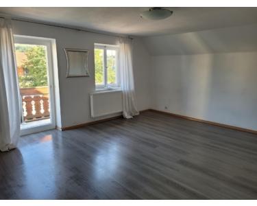 Im Dachgeschoss befinden sich drei weitere Räume, darunter ein Durchgangszimmer und ein großzügiges Ostzimmer mit Zugang zum sonnigen Balkon. Zusätzlich gibt es eine kleine Abseite und einen Speicher.