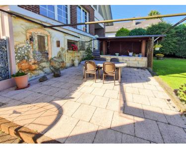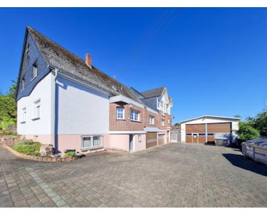 Zum Verkauf steht ein geräumiges, sehr gepflegtes Ein.-/Zweifamilienhaus mit 3 Garagen und einer kleinen Halle. Das Objekt wurde ca. 1957 in solider, massiver Bauweise errichtet. Anbau 1 erfolgte ca. 1968 und der 2. Anbau ca. 2000. Die Wohnfläche von ca. 340 m² teilt sich, wie folgt, auf: Erdgeschoss ca. 180 m² und Obergeschoss ca. 160 m². Zudem ist die Immobilie unterkellert, dort befinden sich auch die 3 Garagen. Neben dem Haus wurde eine Halle von ca. 170 m² und einem Nebenraum von 26m² errichtet. Aufgrund des großen Innenhofs sind dort einige Stellplätze vorhanden. Das Grundstück von ca. 1.320 m² ist im hinteren Gartenbereich pflegeleicht mit Beeten und kleinen Nebengebäuden angelegt. Dort befindet sich auch eine gemütliche, große Terrasse.