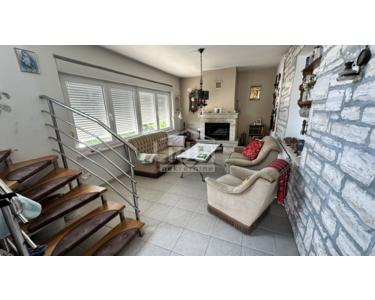 Das Erdgeschoss besteht aus einer Eingangsterrasse und einem Treppenabsatz (11,87 m²), einem Esszimmer (18,11 m²), einer Küche (7,60 m²), einem Schlafzimmer (8,25 m²), einem Schlafzimmer (9,55 m²), einem Badezimmer (2,82 m²), einem Wohnzimmer (19,10 m²), einer nicht überdachten Terrasse (13,80 m²) und einer vorgefertigten Holztreppe (3,60 m²), die in den ersten Stock führt.