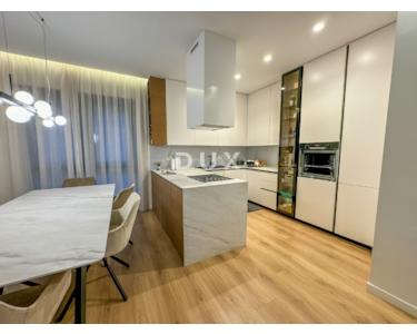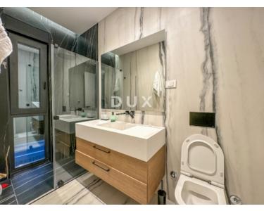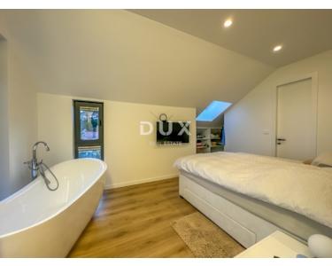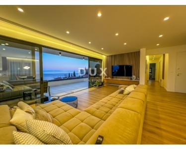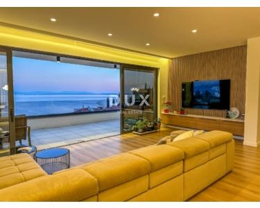 DUX bietet aus seinem Langzeitmietangebot ein geräumiges, 171 m² großes Penthouse an, das Komfort und modernes Design vereint. Es befindet sich auf dem Dach eines attraktiven Neubaus im Zentrum von Opatija und bietet absolute Privatsphäre und eine exklusive Wohnatmosphäre. Das Penthouse besteht aus drei eleganten Schlafzimmern und zwei modernen Badezimmern. Das geräumige Wohnzimmer ist mit einer modern ausgestatteten Küche und einem Esszimmer verbunden, wodurch ein harmonischer Raum für Alltag und Geselligkeit entsteht. Beim Bau und der Einrichtung wurden hochwertige Materialien verwendet, die Luxus und Eleganz betonen. Ein besonderer Vorteil dieser Wohnung ist die 51 m² große Terrasse mit Panoramablick auf das Meer und die Stadt – perfekt zum Entspannen und Genießen von Sonnenuntergängen. Darüber hinaus bietet das Gebäude eine private Garage mit zwei Stellplätzen und zusätzlichem Stauraum. Die Mieter haben Zugang zu einem gemeinschaftlich genutzten beheizten Pool auf dem Dach mit beeindruckendem Blick auf die Kvarner Bucht und Opatija. Für die Einrichtung eines weiteren Pools auf dem Dach wurden Vorbereitungen getroffen. Die Lage ist hervorragend – nur eine Gehminute vom Meer und der berühmten Promenade Lungomare entfernt. Dieses Penthouse bietet eine einzigartige Gelegenheit zur Langzeitmiete im Herzen von Opatija. Monatsmiete: 4.000 € zzgl. Nebenkosten. Für eine Besichtigung kontaktieren Sie bitte einen vertrauenswürdigen Makler – Beratung auf Deutsch möglich.