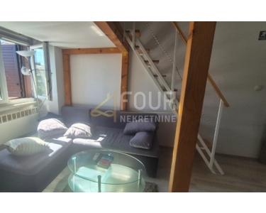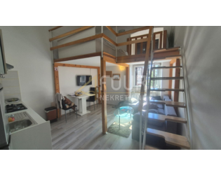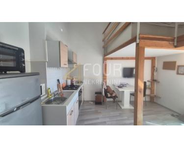 Ein Studioapartment mit Galerie steht in Brajda zur Miete, mit einer Gesamtfläche von 30 m². Die Wohnung befindet sich im Originalzustand und verfügt über PVC-Fenster und Heizkörperheizung. Der untere Bereich umfasst ein Wohnzimmer mit Küche und Bad, auf der Galerie befindet sich ein Bett.