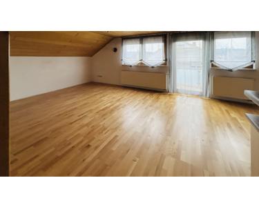 Die Dachgeschosswohnung erstreckt sich auf über etwa 80 m² und bietet drei gut geschnittene Zimmer. Mittelpunkt der Wohnung ist der großzügige und helle Wohn- und Essbereich mit integrierter Küche, von dem aus Sie direkten Zugang zum Balkon auf der Südseite haben.
