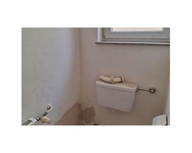 Im Hochparterre befinden sich ein kleiner Flur, zwei Zimmer mit Parkett und Laminatboden sowie ein gefliestes Bad mit WC und ein Küchenraum
