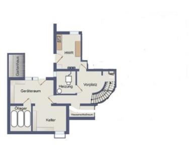 Weiterhin sind noch folgende Nebenräume im Keller vorhanden: Hauswirtschaftsraum, Diele, Heizraum, großer Arbeits- bzw. Werkraum unter der Garage. Der Garten steht dem Mieter zur Nutzung zur Verfügung und wird noch durch einen Geräteschuppen ergänzt.