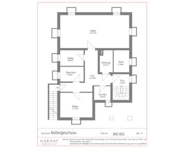 drei Kellerräume, Waschküche mit Anschlüssen für drei Waschmaschinen, Heizungsraum, Raum mit Öltank, Vorratsraum