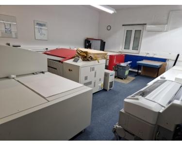 Derzeit ist in dem Gebäude eine Druckerei mit ca. 30 Mitarbeitern beheimatet, die Ihren Sitz im Sommer 2025 mit dem Stammsitz zusammenlegt.