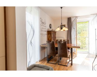 Im Erdgeschoss empfängt Sie ein großzügiger, nach Süden ausgerichteter Wohn- und Essbereich mit direktem Zugang zur großen, lichtdurchfluteten Küche mit Essplatz – ideal für gesellige Abende und Familienmomente. Ein praktischer Hauswirtschaftsraum sowie ein modernes Gäste-WC sorgen zusätzlich für Komfort und Alltagstauglichkeit. Das Obergeschoss beherbergt die Schlafräume sowie ein geräumiges Badezimmer mit bodengleicher Dusche. Zwei Stellplätze, einer unter dem Carport direkt am Haus, bieten kurze Wege und runden das Gesamtpaket ab.