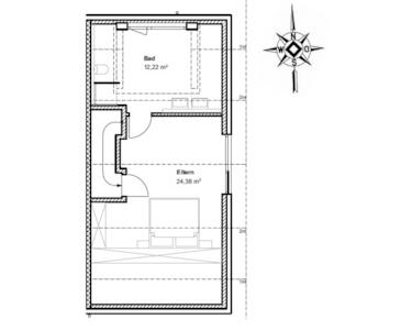 Ein echtes Highlight ist der Elternbereich im Dachgeschoss. Hier finden Sie nicht nur ein komfortables Schlafzimmer, sondern auch ein privates Duschbad. So wird das Dachgeschoss zu Ihrer persönlichen Wohlfühloase, abgetrennt von den restlichen Räumen des Hauses.