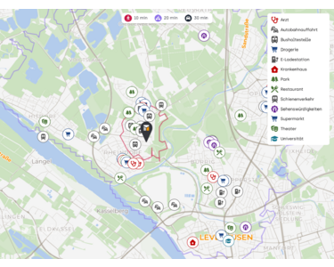 Die Immobilie liegt in einer gut angebundenen und infrastrukturell attraktiven Gegend von Leverkusen. Für eine bequeme Anbindung an den öffentlichen Nahverkehr sorgen mehrere Bushaltestellen in unmittelbarer Nähe, die in wenigen Gehminuten erreichbar sind. Die nächste Bahnstation, Leverkusen-Rheindorf, ist ebenfalls nur ca. 800 Meter entfernt und bietet eine schnelle Verbindung in die umliegenden Städte.
