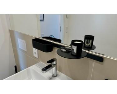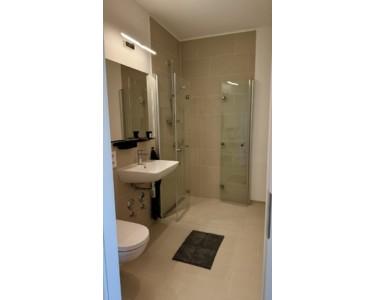 -Bad mit Glaswand für Dusche sowie Villeroy & Boch Hängeschrank