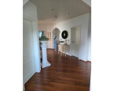 Der große, breite Flur mit offenem Blick ins Wohnzimmer, verleiht dem Haus schon beim Betreten eine herzlich einladende Atmosphäre.