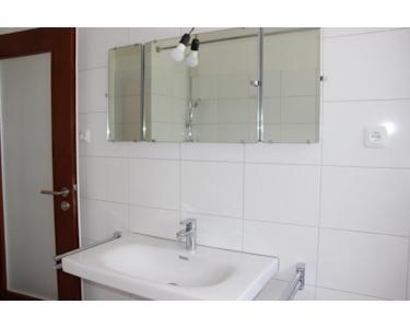 * Bad im Jahr 2020 erneuert, Bodenfliesen grau, Wandfliesen weiß