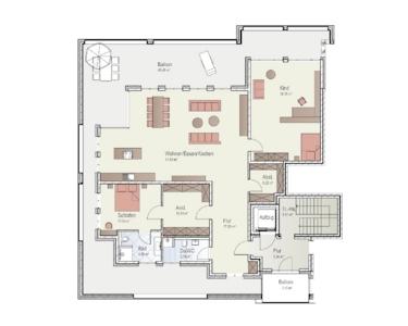 Die Penthouse Wohnung ist selbstverständlich barrierefrei über einen Personenaufzug zu erreichen, der vom Kellergeschoss mit Fahrrad- und Kinderwagenabstellbereich sowie Entsorgungsraum bis zu allen Wohnetagen führt.
