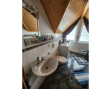 Bad mit Wand- u. Bodenfliesen grau