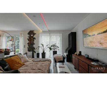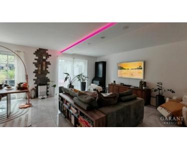 Die Ausstattung ist durchweg hochwertig: Fußbodenheizung in allen Etagen, dreifach verglaste Fenster mit elektrischen Rollläden, Luft-Wasser-Wärmepumpe mit Solaranlage, edle Fliesen- und Laminatböden sowie geschmackvoll gestaltete Bäder mit Mosaikfliesen.
