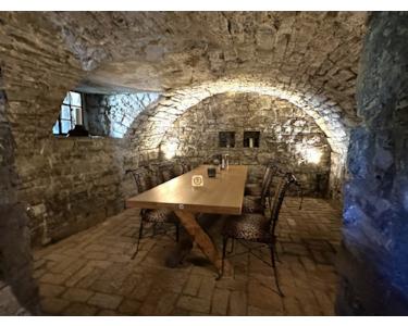 Im Erdgeschoss lädt ein großer Gastraum zu Feiern in geschlossener Gesellschaft ein. Ein besonderes Highlight ist der historische Felsenkeller mit Kappendecke, der für ein einzigartiges Ambiente für gesellige Runden sorgt. Ergänzt wird diese Etage durch die großzügige Küche, modern ausgestattete Sanitäranlagen sowie dem Sudhaus.