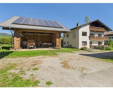 Die Liegenschaft verfügt über ein massiv gebautes Wohnhaus mit ca. 240 m² Wohnfläche, vier Ferienappartements im Erdgeschoss und einem separaten Wohnbereich im Obergeschoss. Beheizt wird das Objekt über eine Hackschnitzelanlage mit erneuertem Brenner (2023) und bestehender Micro-Fernwärmeversorgung. Eine Photovoltaikanlage mit mehr als 22 kWp sowie eine Solarthermieanlage sichern eine weitgehend autarke Energieversorgung. Ergänzend stehen ein Massivschuppen mit rund 300 m², eine 2014 errichtete Halle mit ca. 110 m² und ein Hackschnitzellager zur Verfügung.
