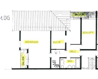 1. DG: großzügige Diele; Schlafzimmer mit Balkon; Badezimmer mit Badewanne, Waschmaschinenanschluss und WC; Wohnküche mit Ausgang zum Balkon; Wohnzimmer mit Zugang zum weiteren Balkon;