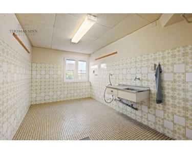 So viel Potenzial die Immobilie auch bereithält, so klar muss man sagen: Der Zustand ist insgesamt stark renovierungsbedürftig. Vor allem in energetischer Hinsicht besteht Handlungsbedarf – unter anderem erfolgt die Beheizung bislang lediglich über Öl-Warmluftöfen. Wer dieses Objekt nach seinen Vorstellungen modernisieren möchte, sollte daher mit einem größeren Budget in sechsstelliger Höhe rechnen.