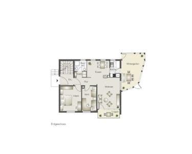 In der Erdgeschoss-Einheit finden sich auf ca. 74 m² drei Zimmer, ein offener Essbereich, Küche, Tageslichtbad und Loggia sowie zusätzlich oben erwähnter Wintergarten.