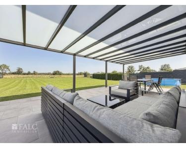 Auch im Außenbereich überzeugt die Immobilie auf ganzer Linie. Das rund 1.666 m² große Grundstück lädt mit einem tollem Blick in die Natur zum Entspannen ein. Highlight ist die erst im Jahr 2024 neu angelegte, etwa 48 m² große überdachte Terrasse, die sowohl für gesellige Abende als auch für ruhige Momente bspw. beim Sonnenaufgang der ideale Ort ist. Zur kostensparenden Bewässerung des Gartens wurde im hinteren Bereich des Grundstücks ein eigener Brunnen gebohrt. Ein großes Doppelcarport direkt am Haus bietet Platz für mindestens zwei Fahrzeuge, weitere eigene Stellplätze befinden sich auf der gepflasterten Fläche neben dem Haus. Angrenzend an das Carport steht ein Abstellraum zur Verfügung, der beispielsweise als Werkstatt genutzt werden kann. Darüber hinaus sorgt ein separates Gerätehaus für weiteren Stauraum.