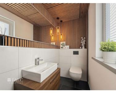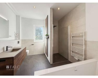 Das Badezimmer und das Gäste-WC sind mit hochwertigen Materialien von Markenherstellern wie bspw. Villeroy & Boch ausgestattet. Im gesamten Haus sorgt eine wassergeführte Fußbodenheizung für angenehme Wärme, während die 3-fach verglasten Fenster mit elektrischen Rollläden Komfort und Energieeffizienz verbinden. Unterstützt wird dies durch Solarkollektoren auf dem Dach, die das Warmwasser aufbereiten, sowie einer Lüftungsanlage mit Wärmerückgewinnung. Insgesamt sorgt das für ausgezeichnete Energiewerte. Ein gut begehbarer Dachboden bietet zusätzlichen Stauraum.