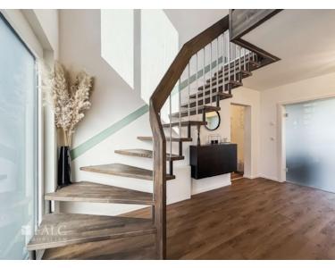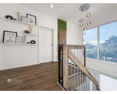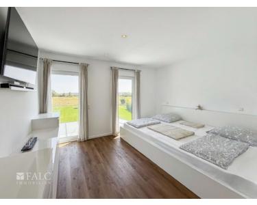 Dieses neuwertige Objekt besticht durch modernes Design, eine hochwertige Ausstattung und ein großzügiges Grundstück mit unverbaubarem Blick in die Natur. Auf rund 165 m² Wohnfläche erwartet Sie ein durchdachtes Raumkonzept mit vier Zimmern, einer modernen Einbauküche, einem stilvollen Badezimmer sowie einem Gäste-WC. Die Einbauküche ist im Kaufpreis enthalten. Besonders beeindruckend ist der knapp 50 m² große Wohn- und Essbereich mit offener Küche und Kaminofen, der das Herzstück des Hauses bildet. Der großzügige Eingangsbereich mit offener Galerie verleiht der Immobilie zusätzliche Eleganz.