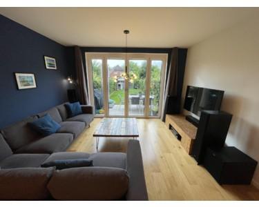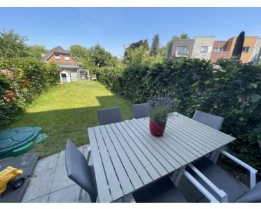 Vom offenen Küchen/Wohnbereich im Erdgeschoss kann man direkt durch die großzügigen Terrassenflügeltüren in den schönen Garten eintreten. Hierzu gehört auch ein Gartenhäuschen, welches praktische Nutzfläche und Platz für Fahrräder bietet.