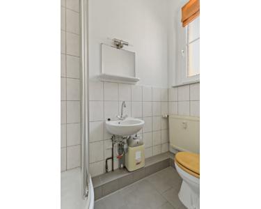 Ihr gefliestes Tageslichtbad ist ausgestattet mit einer Dusche. Zusätzlich befindet sich auf "halber Treppe" ein zusätzliches WC, exklusiv für diese Wohnung.