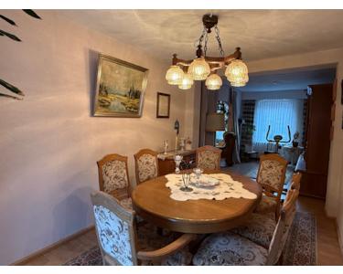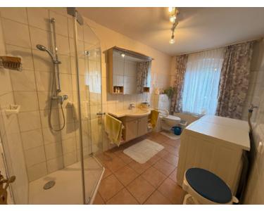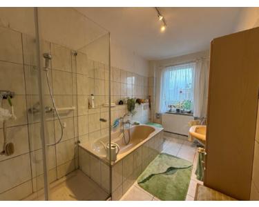 Im Erdgeschoss gelangt man vom Hausflur aus in das ca. 2019 gemachte Badezimmer mit Dusche und Waschmaschinenanschluss und in den großzügigen Wohn-Essbereich mit angrenzender Küche.