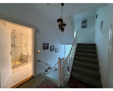 Das Dachgeschoss ist ausgebaut und hier gibt es ein kleines Badezimmer mit Dusche, einen großen Dielenbereich mit Zugang zum Spitzboden und auch in dieser Etage drei weitere Zimmer.
