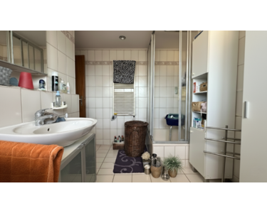 - Modernes Tageslichtbad mit Dusche, WC und zwei Einzelwaschbecken