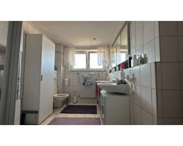 Im Obergeschoss erwarten Sie drei helle Schlafzimmer, die vielfältige Nutzungsmöglichkeiten bieten. Besonders das Elternschlafzimmer besticht durch seinen begehbaren Kleiderschrank und den Zugang zum sonnigen Balkon. Das großzügige Tageslichtbad ist modern ausgestattet und bietet mit Dusche, WC und zwei Einzelwaschbecken den idealen Start in den Tag.
