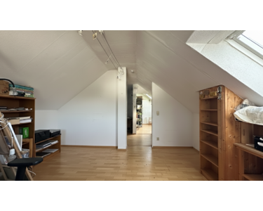 Ein weiteres Highlight ist der ausgebaute Dachboden, der 2022 vollständig saniert wurde. Über eine feste Treppe erreichbar, präsentiert sich dieser Raum als ideales Arbeitszimmer oder Hobbybereich – ein Ort mit Rückzugsmöglichkeit und viel Potenzial.