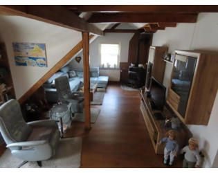 Die Wohnung besticht durch ihren gemütlichen Charme, der durch die Böden, Decken, Treppe und Balken aus Massivholz erzeugt wird.