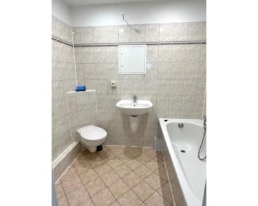 Mit Balkon, gefliestes Bad mit Wanne, moderner PVC als Fußbodenbelag, Tapeten Raufaser weiß gestrichen, Küche mit Fenster, Keller