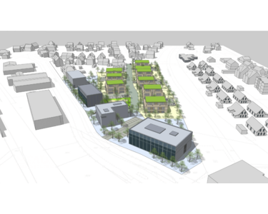 Zurzeit ist eine Bebauung mit zwei Vollgeschossen plus Staffelgeschoss im Bereich des Wohn- und Sozialbaus vorgesehen.