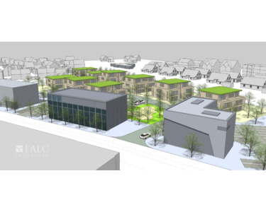 Wohnhäuser mit 6–8 Parteien: Geplant sind moderne Mehrfamilienhäuser. Ebenfalls können man ein Penthouse mit Dachterrassen realisiert. Auch Sozialwohnungen und Studentenwohnungen sind Bestandteil der Planungen.