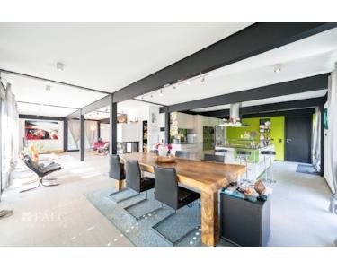 Auf ca. 332 m² Wohnfläche plus 158 m² Nutzfläche verteilen sich drei Etagen, die bequem über eine Innentreppe erschlossen sind. Das Haus befindet sich in sehr gutem Zustand und überzeugt mit hochwertiger Ausstattung inklusive moderner Smart-Home-Technik (Anschaffungskosten über 100.000 €). Ein Aufzug ist vorhanden.