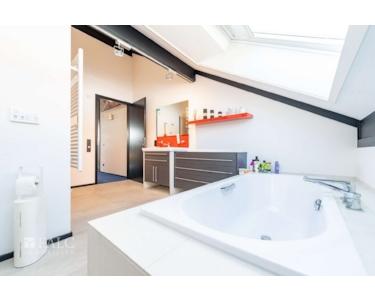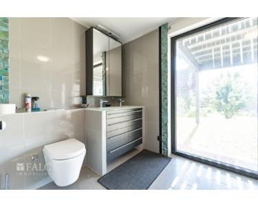 Das Haus ist mit einer modernen, sparsamen Wärmepumpe ausgestattet und erreicht einen niedrigen Energieverbrauchswert von nur 100 kWh/(m² a).