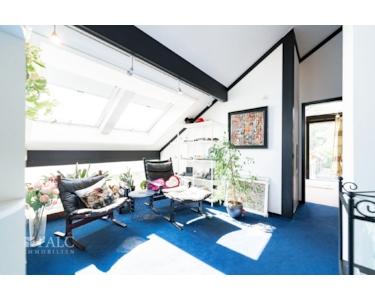 Im Untergeschoss liegt eine separate Einliegerwohnung mit kleiner Einbauküche, ideal für Gäste, Au-pair oder zur Vermietung. Außerdem befindet sich hier ein weiteres Arbeitszimmer.