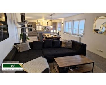 Die Küche, Esszimmer und Wohnzimmer sind im tollen "open- space- Charakter" offen mit über 54m² gestaltet und bieten Licht, Luft und großzügigen Wohnraum und Blick in den angrenzenden Wald.