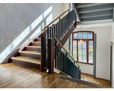 Im Dachgeschoss dieses besonderen Mehrfamilienhauses verbirgt sich diese außergewöhnliche Loftwohnung, die mit viel Raum, Charakter und Großzügigkeit begeistert. Mit dem Aufzug gelangen Sie bequem in die dritte Etage - von dort führt eine Treppe direkt in das Dachgeschoss, in dem die Einheit liegt.