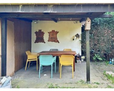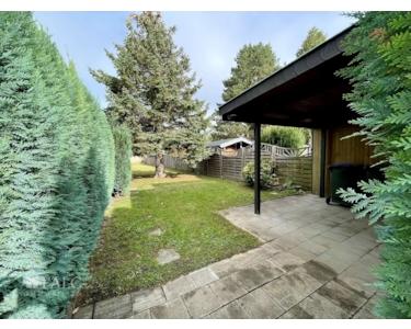 Dieser ist natürlich angelegt und bietet mit einer überdachten, gemütlichen Sitzgelegenheit viel Raum für Erholung, Familienaktivitäten oder entspannte Grillabende.