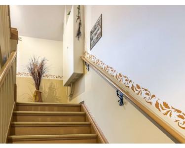 Das Haupthaus besteht aus drei abgeschlossenen Wohneinheiten, wurde Ende der 1990er Jahre umfangreich saniert und befindet sich dank fortlaufender Instandhaltung in gepflegtem Zustand. Es ist voll unterkellert und verfügt über solide Bausubstanz. Die Grundrisse der Einheiten sind gut strukturiert, mit großzügig bemessenen Wohnbereichen und funktionaler Raumaufteilung. Eine Wohnung bietet ein großzügiges Wohnzimmer mit fast 24m², ein separates Kaminzimmer sowie ein Schlafzimmer mit direktem Zugang zum Tageslichtbad. Eine weitere Wohneinheit verfügt über ein separates Esszimmer, ein Wohnzimmer, ein Schlafzimmer sowie eine abgeschlossene Küche – die Raumgrößen ermöglichen eine komfortable Nutzung sowohl durch Familien als auch durch Paare. Die dritte Wohneinheit kombiniert helle, gut geschnittene Räume mit flexibler Nutzungsmöglichkeit und eignet sich ebenso als Büro- oder Gästewohnung.