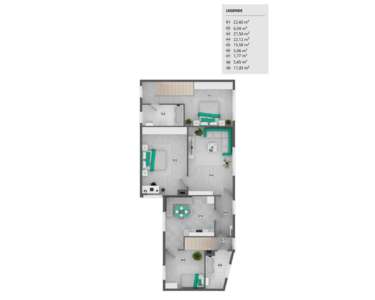 Ergänzt wird das Ensemble durch ein separates Nebenhaus mit drei weiteren Wohnungen. Eine Einheit ist derzeit vermietet und generiert stabile Mieteinnahmen. Die beiden übrigen Wohnungen stehen leer und können nach Bedarf entweder neu vermietet oder selbst genutzt werden. Auch hier sind die Grundrisse gut durchdacht: Beispielsweise bietet eine der Einheiten eine großzügige Wohnküche mit über 25m² Fläche, ein separates Schlafzimmer sowie ein kleines Duschbad – ideal für Singles oder Pendler. Eine weitere Wohnung kombiniert zwei große Schlafzimmer mit einem Wohnzimmer und einem zusätzlichen Kinderzimmer. Die Raumstruktur erlaubt hier sowohl die Nutzung als Familienwohnung als auch eine WG-taugliche Aufteilung.