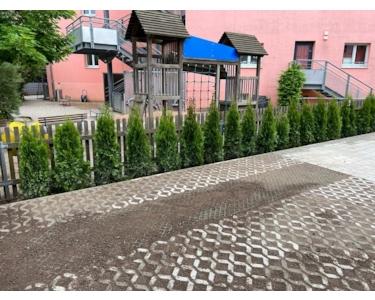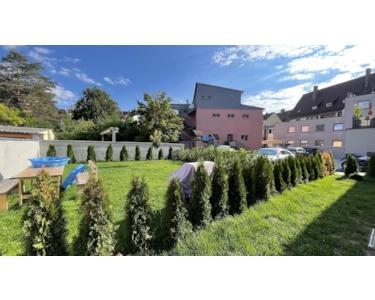 Gerne darf auch unser schön angelegter Gemeinschaftsgarten genutzt werden. Kinder sind herzlich willkommen - direkt angrenzend befindet sich auch ein Kindergarten. Haustiere dürfen nach Absprache auch sehr gerne mit einziehen.