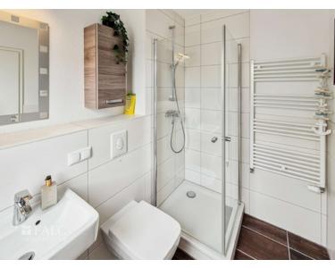 Zwei weitere Zimmer im Obergeschoss können flexibel als Kinderzimmer, Arbeitszimmer oder Hobbyraum genutzt werden. Das Badezimmer ist mit einer Badewanne und einer separaten Dusche ausgestattet, was den täglichen Komfort erhöht.