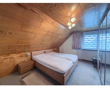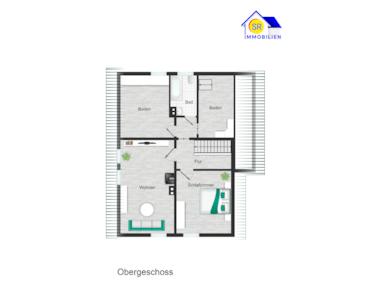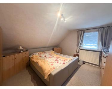 Im ausgebauten Obergeschoss gibt es neben drei Zimmern ein weiteres kleines Badezimmer mit Dusche. Ein Teil des Hauses ist unterkellert, aufgeteilt in den Heizungsraum und zwei Kellerräume, einer mit Ausgang in den Garten. Der von der seitlichen Terrasse zugängliche alte Stall würde sich hervorragend für die Erweiterung des Badezimmers im Erdgeschoss eignen (dies muss allerdings vorab bautechnisch geprüft werden).